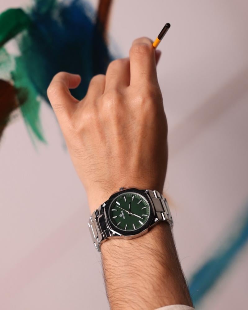 ميناء بسيط وواضح، وسوار من الستانلس ستيل، تجمع بين الفخامة والعملية.